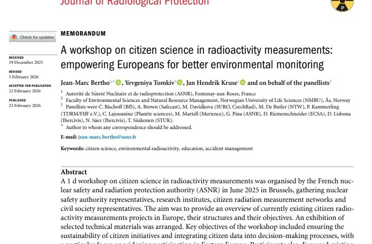 A 1 day workshop on citizen science in radioactivity measurements was organised by the French nuclear safety and radiation protection authority (ASNR) in June 2025 in Brussels, gathering nuclear safety authority representatives, research institutes, citizen radiation measurement networks and civil society representatives including Nuclear Transparency Watch.